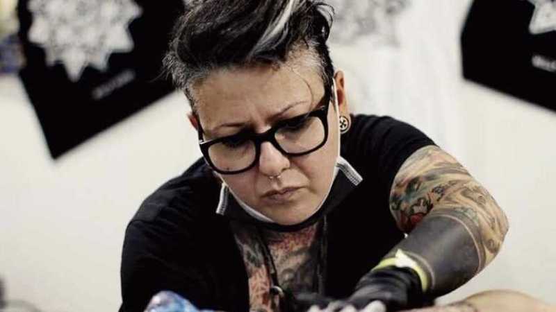Tatuatrice pluripremiata, Milly Macis si è formata in giro per l’Europa, dove ha collaborando con grandi artisti e ottenendo premi internazionali. Da 26 anni padroneggia aghi e inchiostri e si è specializzata in tribal e new tribal, una rilettura moderna dei tatuaggi tribali con la tecnica del dot work. È anche fotografa, rigorosamente di scatti in bianco e nero, che indagano nell’interiorità delle persone, nel lato dark delle esperienze comuni, per lo più quelle che spesso vengono nascoste o censurate. Si occupa anche di stile sketch e illustrazione, sempre espressamente in black. Per La Cripta Free House ha preso spunto da un mondo che l’ha sempre ispirata: la simbologia spirituale buddista racchiusa nei mandala, realizzandone uno nero e oro, in una combinazione che ne esalta la tridimensionalità e la sua personale interpretazione dello spazio sacro.