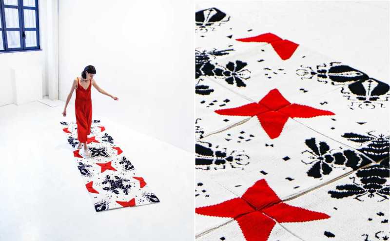 L’ispirazione arriva dalle "Riggiole, le mattonelle in maiolica che si trovano nelle abitazioni sarde", elementi architettonici che, attraverso la rotazione nella posa, creano pattern sempre nuovi. Da qui nasce "Fili d’Anima – su tappéttu", un tappeto modulare che, proprio come le Riggiole, può essere assemblato in diverse combinazioni, adattandosi agli spazi e generando soluzioni sempre inedite.