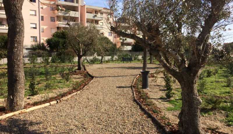 CAGLIARI. Aperta al pubblico una grande area verde a San Bartolomeo:: niente pavimentazioni impermeabili ma solo superfici drenanti. Sono 6.500 metri quadri attrezzati con panchine e cestini portarifiuti e abbelliti con grandi piante di ulivi e 6 esemplari di jacarande, che con la loro ombra e le splendide fioriture ornano già molti spazi cittadini.
