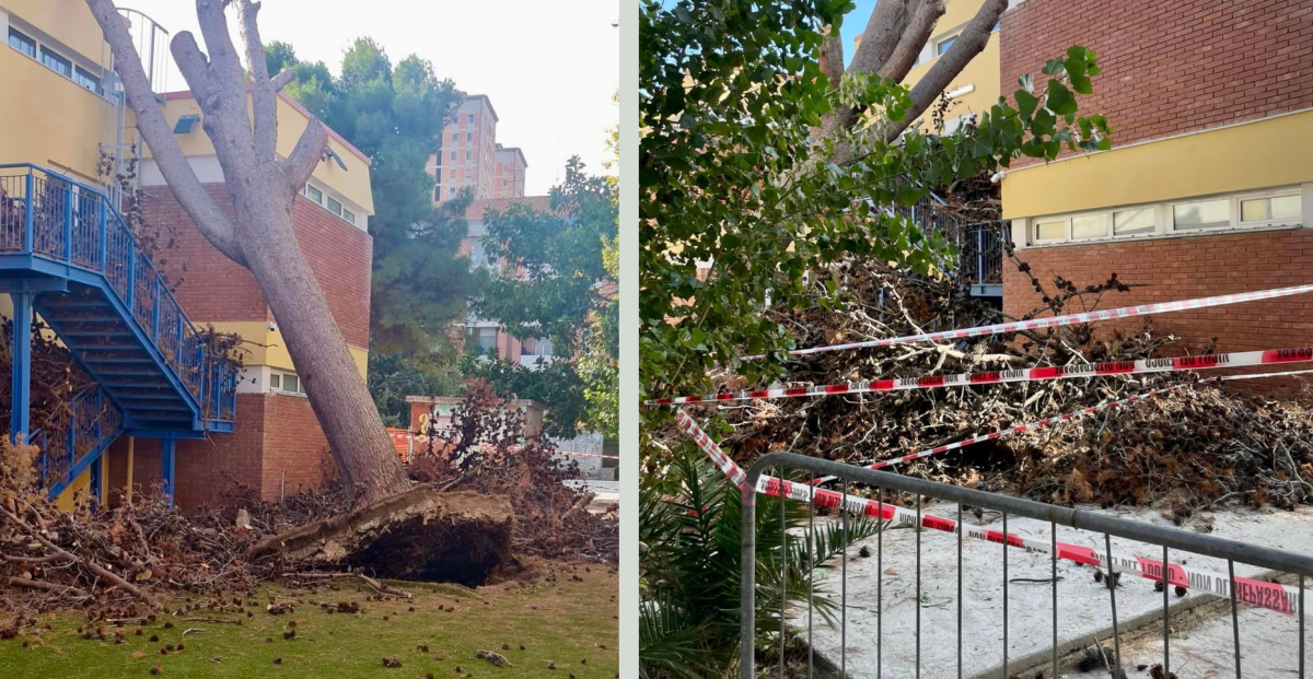 Cagliari, albero sradicato dal vento finisce sulla scuola