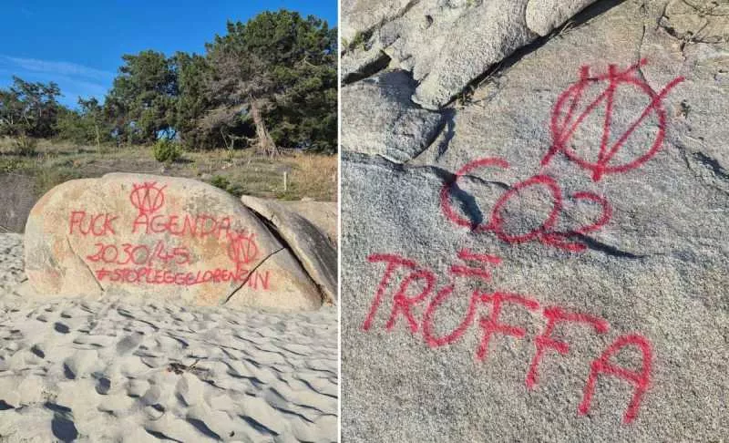 TORTOLÌ. Gli scogli di Foxi Lioni, a Tortolì, vandalizzati. Il messaggio lasciato è contro l’Agenda 2030, quella delle Nazioni Unite che parla, tra le altre cose di ecologia. Ma non solo: con un hashtag si indica anche la legge Lorenzin, quella sul riordino delle professioni sanitarie e sulle sperimentazioni. Infine, in un altro scoglio, la dicitura "Co2 = truffa".