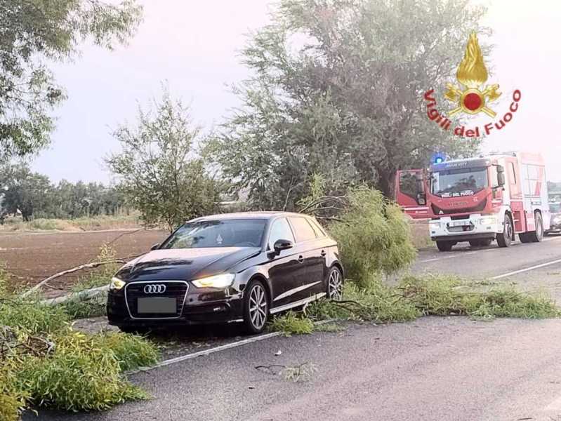 CAGLIARI. Un grosso ramo di un albero caduto su un'autovettura in transito: è successo ieri sulla statale 197, all'altezza del Km 26, nel territorio tra la località di Villasanta e Furtei.