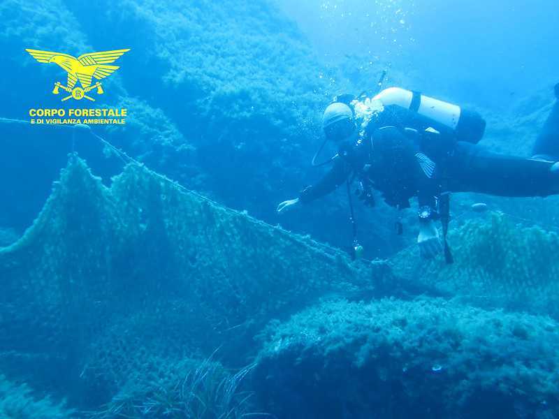 La rete, lunga oltre 300 metri, giaceva sul fondale continuando a catturare pesci e altre specie marine destinate alla morte. Al momento del recupero, effettuato con il supporto dei sub di un’associazione di diving, erano rimasti intrappolati circa 20 esemplari tra cicale di mare, dentici e altre specie ittiche. Grazie alla collaborazione dei sommozzatori, la rete è stata assicurata a una cima e poi issata a bordo della motovedetta “Tore Ena” del Corpo Forestale, che ha completato le operazioni di salpaggio.