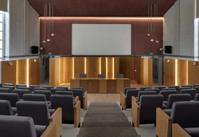 "L’obiettivo principale nel progetto di valorizzazione è stato quello di coniugare tradizione e contemporaneità: rendere l’aula magna un ambiente funzionale, accessibile e tecnologicamente aggiornato, capace di accogliere fino a 350 persone", scrivono dal Dettori. "La filosofia progettuale ha mirato a salvaguardare gli elementi storici, come la parete bordeaux d’ingresso, affiancandoli a soluzioni moderne. Tra gli interventi principali spiccano l’abbattimento delle barriere architettoniche, l’inserimento di sedute fisse e la realizzazione di un palco polifunzionale, pensato per ospitare eventi diversi: dalle cerimonie istituzionali, agli spettacoli teatrali e musicali. La scelta dei materiali - legno di rovere e resina - e la perfetta integrazione dei nuovi impianti audio, video e di illuminazione assicurano flessibilità d’uso, risparmio energetico e un’armoniosa percezione dello spazio. Il risultato è un ambiente rinnovato, ma fedele alla sua configurazione originaria: un simbolo di appartenenza e apertura, pronto a essere punto di riferimento per l'educazione, l'arte e la comunità".