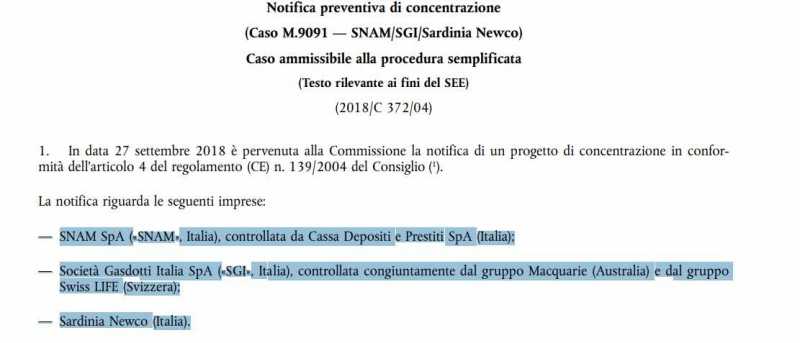Ma chi sono queste società? Snam è una società leader nel trasporto, stoccaggio e rigassificazione del metano: il controllo è affidato a Cassa depositi e Prestiti, la cassaforte delle operazioni finanziarie statali controllata per l'83% dal ministero dell'Economia, per il resto da numerose fondazioni bancarie (da Monte dei Paschi fino, ovviamente alla Fondazione di Sardegna del Banco). La proprietà di Società gasdotti Italia invece è invece suddivisa tra il gruppo Macquarie (Australia) e dal gruppo Swiss Life (Svizzera). La sede è a Frosinone. Macquaire, conosciuta come millionaire factory, è una banca d'investimenti australiana, mentre Swisse Life è una società leader,quotata in borsa, nel settore dei prodotti assicurativi.