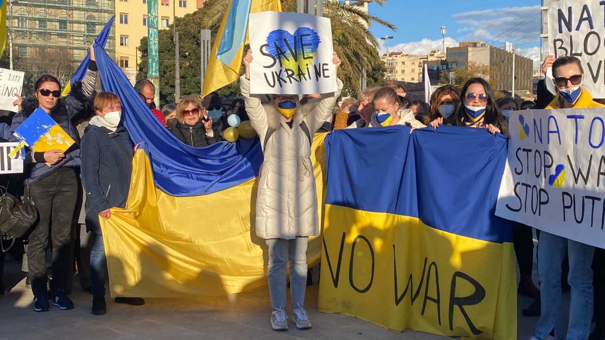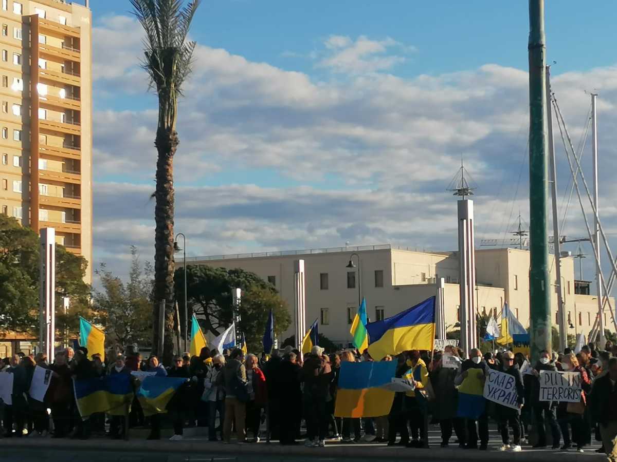 Le bandiere giallo celesti hanno sventolato sopra i cartello No war. Tante le donne, che hanno risposto all'appello lanciato dal console onorario dell'Ucraina in Sardegna, Anthony Forte.