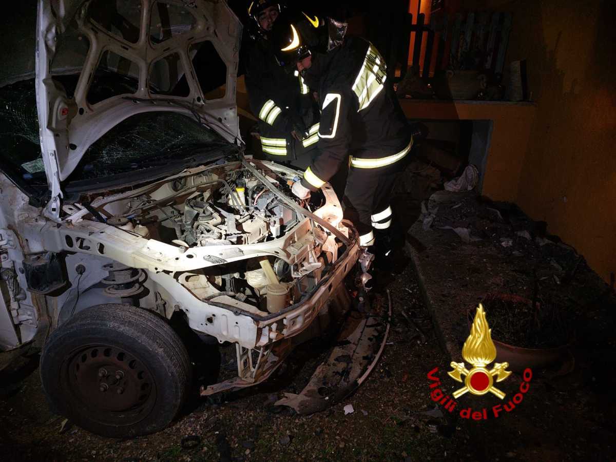 L'esplosione, oltre a distruggere la parte anteriore dell'auto, ha mandato in frantumi il vetro della finestra della casa del proprietario e danneggiato anche un altro veicolo vicino.