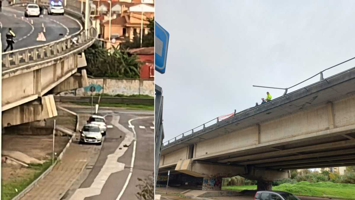 CAGLIARI. Un incidente sull'Asse Mediano, ma i detriti finiscono nella strada sottostante: a lanciare l'allarme (ma non è la prima volta) il comitato di quartiere Genneruxi.via Mercalli che ha pubblicato anche le immagini.