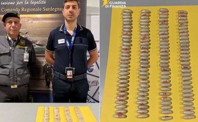 Il corriere, un cittadino nigeriano residente nel Lazio, era arrivato in Sardegna con un volo proveniente dal Belgio. A tradirlo sono stati il fiuto delle unità cinofile ed il suo stesso comportamento, definito come "visibilmente confuso e incapace di giustificare il motivo del suo viaggio": le Fiamme Gialle e i Funzionari Doganali hanno quindi approfondito il controllo e identificato il passeggero come un potenziale "ovulatore".