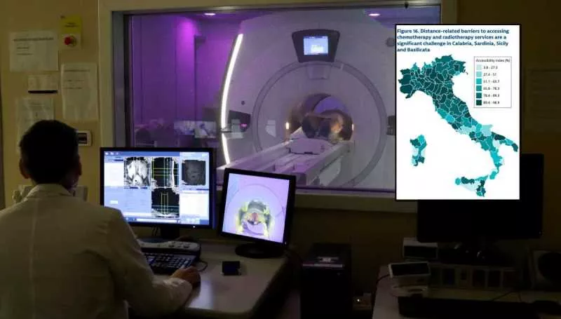 Secondo uno degli ultimi report della Commissione Europea "Country Cancer Profile Series", la Sardegna, ad esempio, è una delle regioni in cui sono più evidenti le barriere legate alla distanza e alle difficoltà quindi di accedere ai servizi per la cura dei tumori. Una mappa, pubblicata nel rapporto, indica la percentuale di residenti in ciascuna provincia che può avere accesso alla chemioterapia e alla radioterapia entro 60 minuti o 100 km di distanza dal luogo in cui abitano, e tutta la parte orientale e occidentale dell'Isola risulta avere un indice di accessibilità tra il 3.8 e il 27.3 (dati tra i più bassi d'Italia).