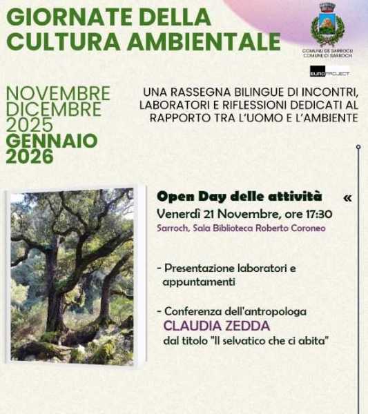 SARROCH. Prenderà il via il 21 novembre il programma delle “Giornate della Cultura Ambientale”, la rassegna promossa dal comune di Sarroch e dedicata ai temi della sostenibilità, dell’educazione ambientale e del legame tra comunità e territorio. Il calendario, articolato fra novembre e dicembre 2025 e gennaio 2026, propone incontri pubblici, laboratori e attività divulgative in formato bilingue.