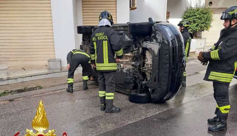 NUORO. Incidente stradale questo pomeriggio a Nuoro, in via Trento. Un'auto si è ribaltata improvvisamente, per cause ancora da accertare: nessun altro veicolo è rimasto coinvolto. Sul posto è intervenuta la squadra 1A della sede Centrale dei Vigili del Fuoco di Nuoro, insieme a polizia locale, carabinieri e 118.