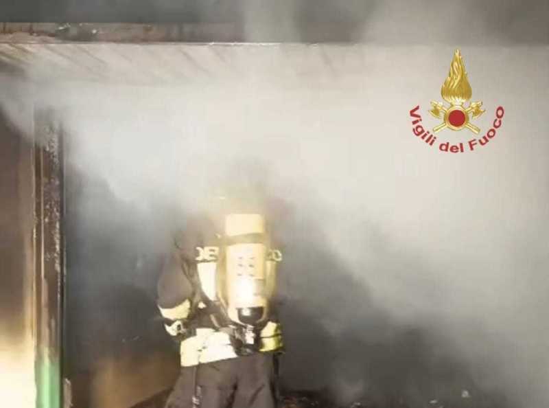 L'incendio ha coinvolto attrezzature e l'intera parte strutturale del garage è stata resa inagibile.