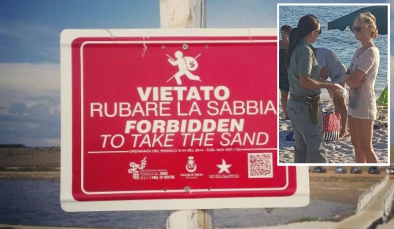 CABRAS. Mari Ermi, ore 14 di ieri. Bagnanti sardi contro turista tedesca, 1-0. Risultato decretato dalla Forestale, intervenuta per sventare l'ennesimo saccheggio di sabbia in una delle spiagge più aggredite per la conquista di "souvenir" illeciti. Ecco la cronaca di una giornata finita con una rissa sfiorata e, con tutta probabilità, una denuncia e una multa. Perché prelevare sabbia dalle spiagge sarde è reato. Lo dicono anche i cartelli disseminati sull'arenile, con avvertimenti in varie lingue. Eppure c'è chi ci prova (la ricostruzione nel post di seguito, di "Sardegna rubata e depredata").