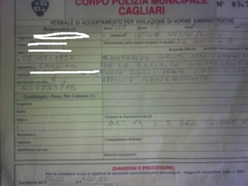 CAGLIARI. Novantenne multato alla Marina per aver buttato l'immondizia fuori dagli orari consentiti. Succede in via Sicilia, dove un anziano residente della zona è stato pizzicato da un agente in borghese mentre conferiva i rifiuti dopo le 6 del mattino. La regola c'è, va rispettata. La sanzione è di 100 euro, se pagata subito, sale a 400 se trascorreranno 60 giorni. E addio pensione, o quasi. Chi ha reso pubblica la notizia, Franco Spignesi, pone un problema: due ore dopo i sacchetti avevano invaso la zona. Il senso della domanda che fa Spignesi è: perché viene sanzionato un vecchietto quando "è costretto a sopportare schiamazzi e limitazioni"? Inevitabile, pare, anche il riferimento alle "risse tra extracomunitari". Sulla stessa linea sembra anche la deputata del Movimento 5 Stelle Manuela Corda, che rilancia il post del residente della Marina. Senza commento.