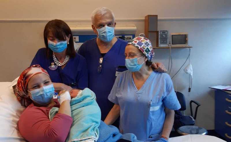 La mamma Fatima, il piccolo Yazid e l'equipe di Ostetricia con il direttore Chessa e la dottoressa Pibiri