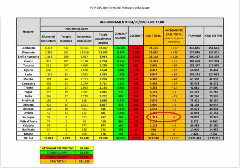 CAGLIARI. Zero nuovi contagi in Sardegna? No, anzi, sono due meno di ieri. Ma non nel senso che è guarito qualcuno: l'incremento segna -2. Questo dice il bollettino della Protezione civile nazionale appena diramato, che si basa su numeri forniti dall'Unità di crisi regionale. Un caso materialmente assurdo. Che può essere spiegato solo in un modo: nei giorni scorsi sono stati conteggiati casi di positività che in realtà non c'erano.