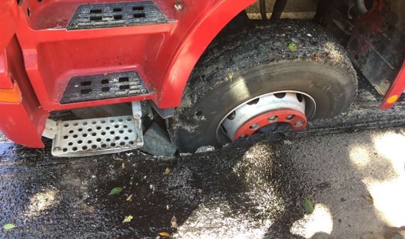 CAGLIARI. Il peso eccessivo del camion lo ha fatto sprofondare con mezza ruota nell’asfalto, per l’ennesima volta in viale Merello. Il fatto è accaduto questa mattina intorno alle 12 davanti alla sede della Croce Rossa. Sul posto sono intervenuti gli agenti della Polizia Municipale per i rilievi, insieme ai Vigili del Fuoco con un’apposita autogru che hanno lavorato per alcune ore.