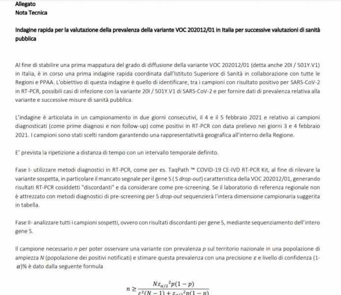 Ma come è stato condotto lo studio? È stata un’indagine rapida, definita nella circolare numero 4761 del Ministero della Salute. L'obiettivo è stato quello di identificare, tra i campioni con risultato positivo per SARS- CoV-2 possibili casi di infezione riconducibili alla variante VOC 202012/01. Ogni regione doveva sequenziare il virus già accertato e, attraverso il lavoro di 82 laboratori, dovevano comunicare i dati sulla circolazione delle eventuali varianti. Solo tre regioni non hanno preso parte all’esperimento.