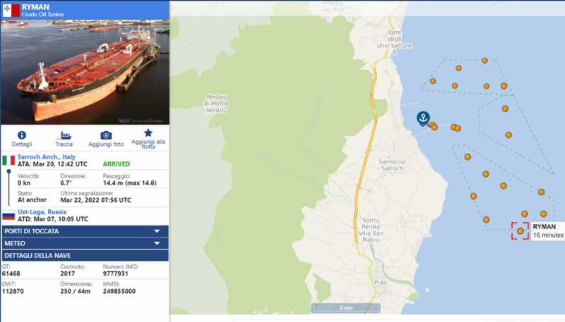 Una delle altre, la Ryman, battente bandiera maltese, è salpata il 7 marzo dal porto di Ust-Luga, nella regione di Leningrado in Russia. Altri colossi del mare che trasportano l'oro nero arrivano da scali italiani, come la Spezia e Taranto. Altre dalla Libia, il Belgio e la Francia.
