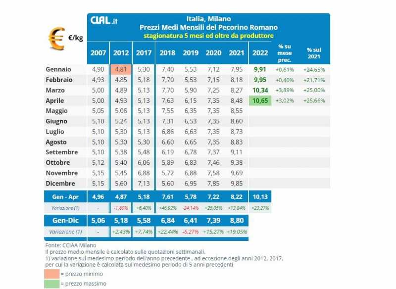 IL PECORINO ROMANO. Una quotazione mai vista: il prezzo medio del pecorino romano è salito a 10.65 euro al chilo. Il prodotto che costituisce lo sbocco del mercato della maggior parte del latte dei pastori della Sardegna fa segnare una quotazione da record. Per capire l'importanza del dato, basta guardare quale fosse il prezzo quando era scoppiata la guerra del latte: a febbraio 2019 veniva pagato 5,53 euro al chilo, due euro in meno rispetto allo stesso periodo dell'anno precedente.