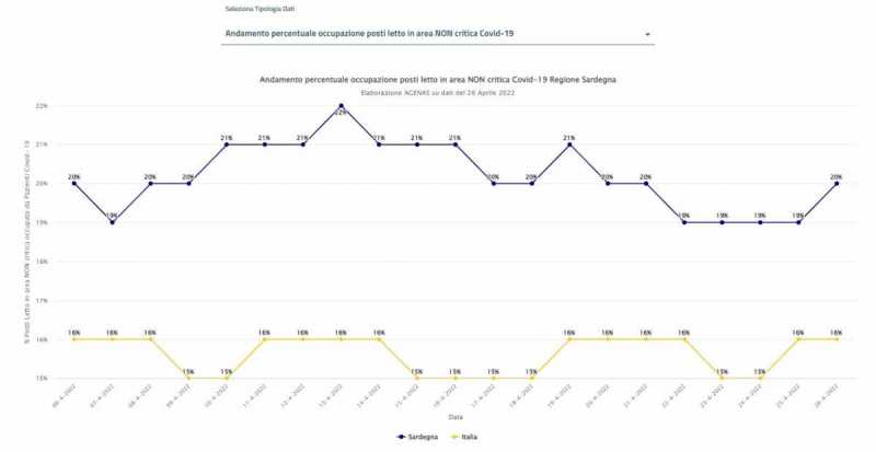 Il dato peggiore per la Sardegna è stato quello della settimana del 13 aprile, i ricoveri erano al 23%, mentre in Italia erano al 16%.