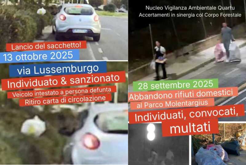 "Parco Naturale Regionale Saline Molentargius, via Padre Attanasio in zona Pirastu, via Lussemburgo in zona Sa Forada, Pitz’e Serra e Simbirizzi… Quattro zone diverse della città, quattro luoghi interessati dal sacchetto selvaggio nei quali, per rimanere soltanto nell’ultimo mese di attività, il Nucleo di Vigilanza Ambientale di Quartu ha individuato, e conseguentemente multato, cittadini indubbiamente poco consapevoli del danno creato alla città riguardo l’ambiente e il decoro pubblico", ha scritto il primo cittadino.