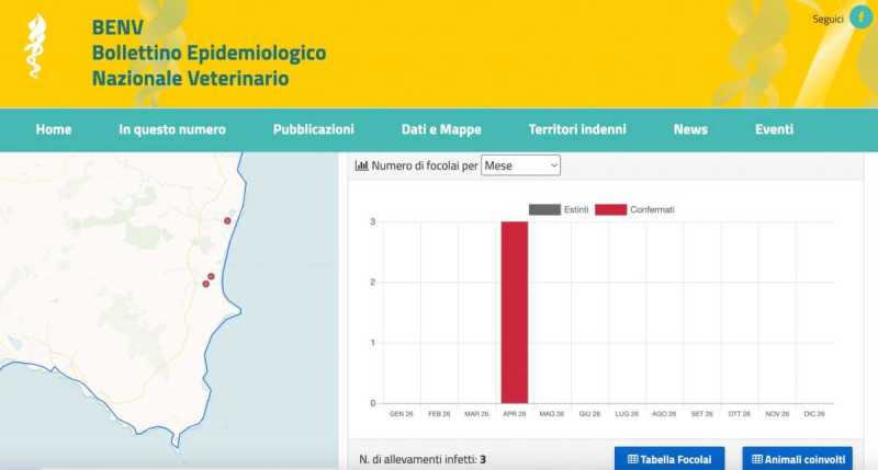 Secondo il Bollettino Epidemiologico Nazionale Veterinario i capi malati salgono da cinque a sette, mentre gli animali morti - attualmente - sono quattro.